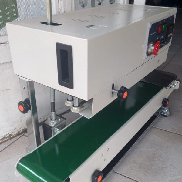 Continuous Band Sealer 1. This sealer has an adjustable speed of up to 20 packets per minute. 2. This sealer is also compatible with different weights up to 5 kgs. 3. This machine is easy to operate. One can use it without having technical knowledge. 4. This machine feeds right to left.