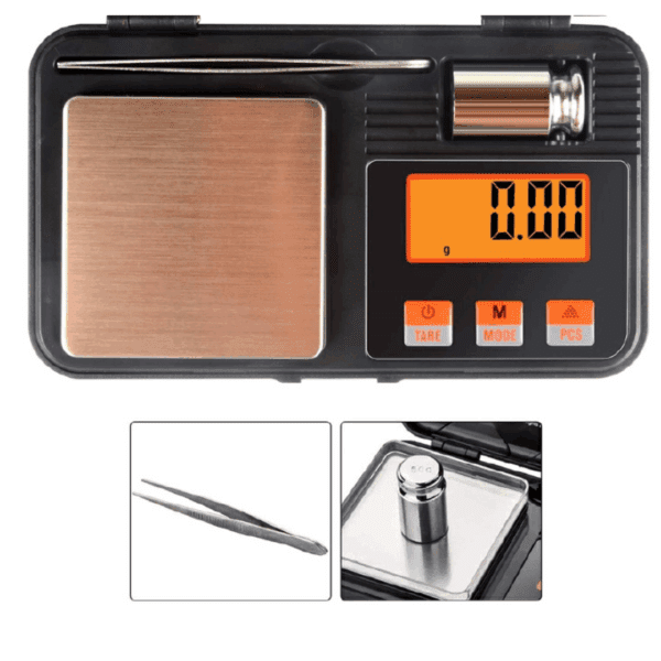Accurate and Versatile Digital Gram Scale (500g x 0.01g) Key Features: Capacity: 500g, Accuracy: 0.01g Color: Orange & Black Power Options: Battery or USB data cable Bonus: 50g calibration weight and self-sealing cellophane bags Ideal for weighing food, jewelry, and more Compact and portable design for ease of use anywhere