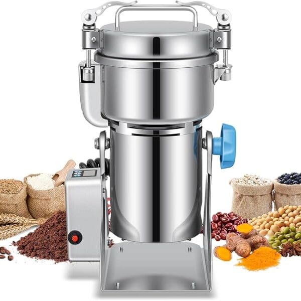 - MULTIPURPOSE GRINDER MILL: Ideal for grinding a variety of materials including grains (soy, corn, rice, wheat), spices (star anise, pepper, rosemary), herbs, sesame, peanuts, walnuts, and dried food like herbal medicine. Ensure materials cover the long blade and do not exceed 2/3 of the jar.