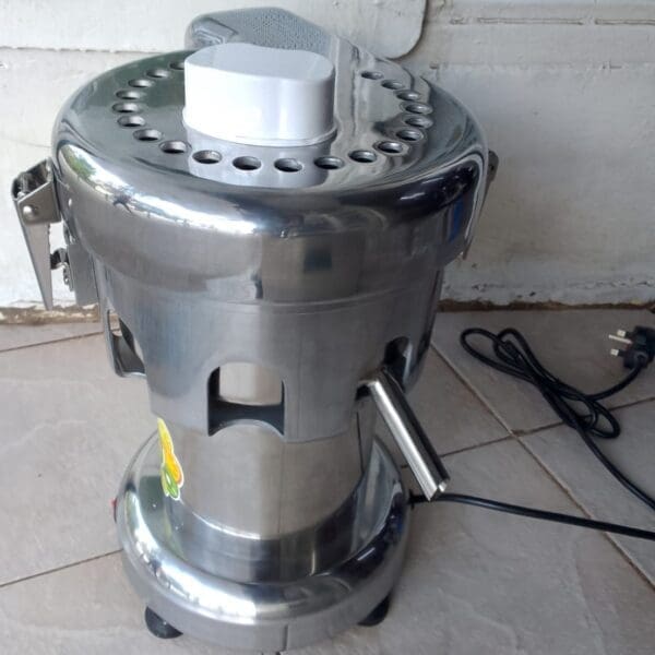 Commercial juice extractor is stainless steel construction for easy cleaning and corrosion prevention