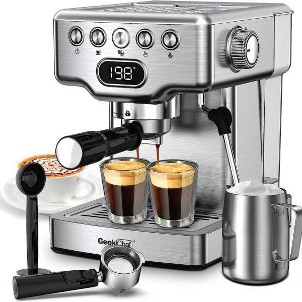 - 【POWERFUL MILK STEAMER】Espresso machine with milk frother has steady steam wand turns milk into silky smooth microfoam. Latte machine is convenient for you to create latte, cappuccino, Mocha or plain white coffee art at home or office. Removable frothing nozzle makes cleaning easy.