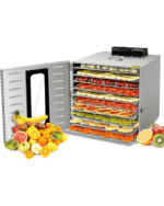 - Large Capacity – 10 trays and 1 drip tray, our 304 stainless steel food dehydrator offers enough space to dry all kinds of vegetables, fruits, herbs, meat, fish and shrimp, bread, mushrooms and others quickly and easily.