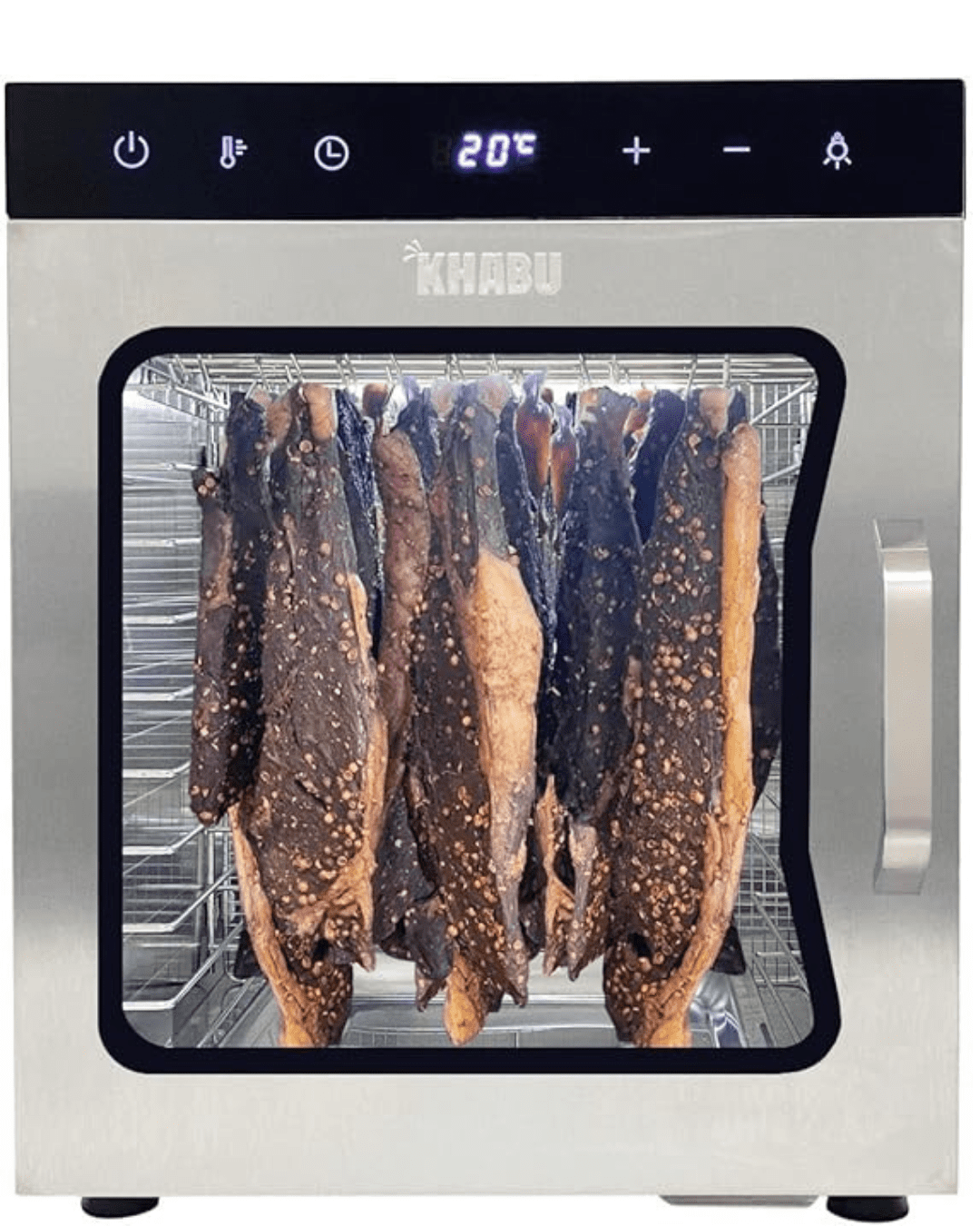 - Advanced Drying Cabinet: With a gentle 20°C start, powerful 800W, and stable 110V commercial capability, this biltong drying box is upgraded with a drying fan and air circulation technology, featuring a 1.8m/s air speed and 1000rpm. These technologies ensure an efficient food drying process and prevent the housing from overheating.