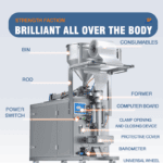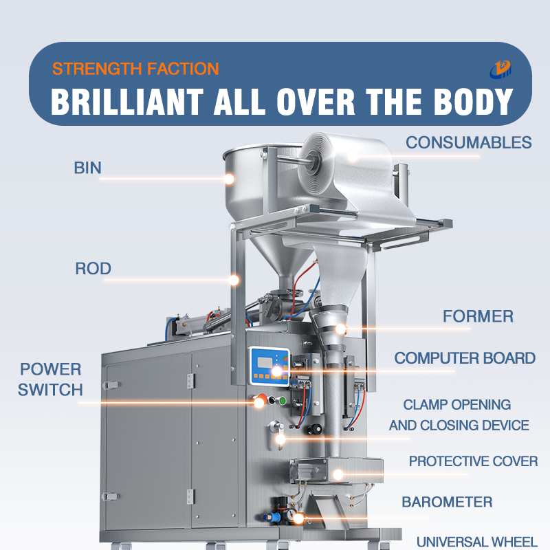 - Wide Application: Suitable for foods, medicines, aquatic products, chemical raw materials, electronic components, and other items(solid, liquid, or powder) by using plastic film or plastic aluminum foil film.