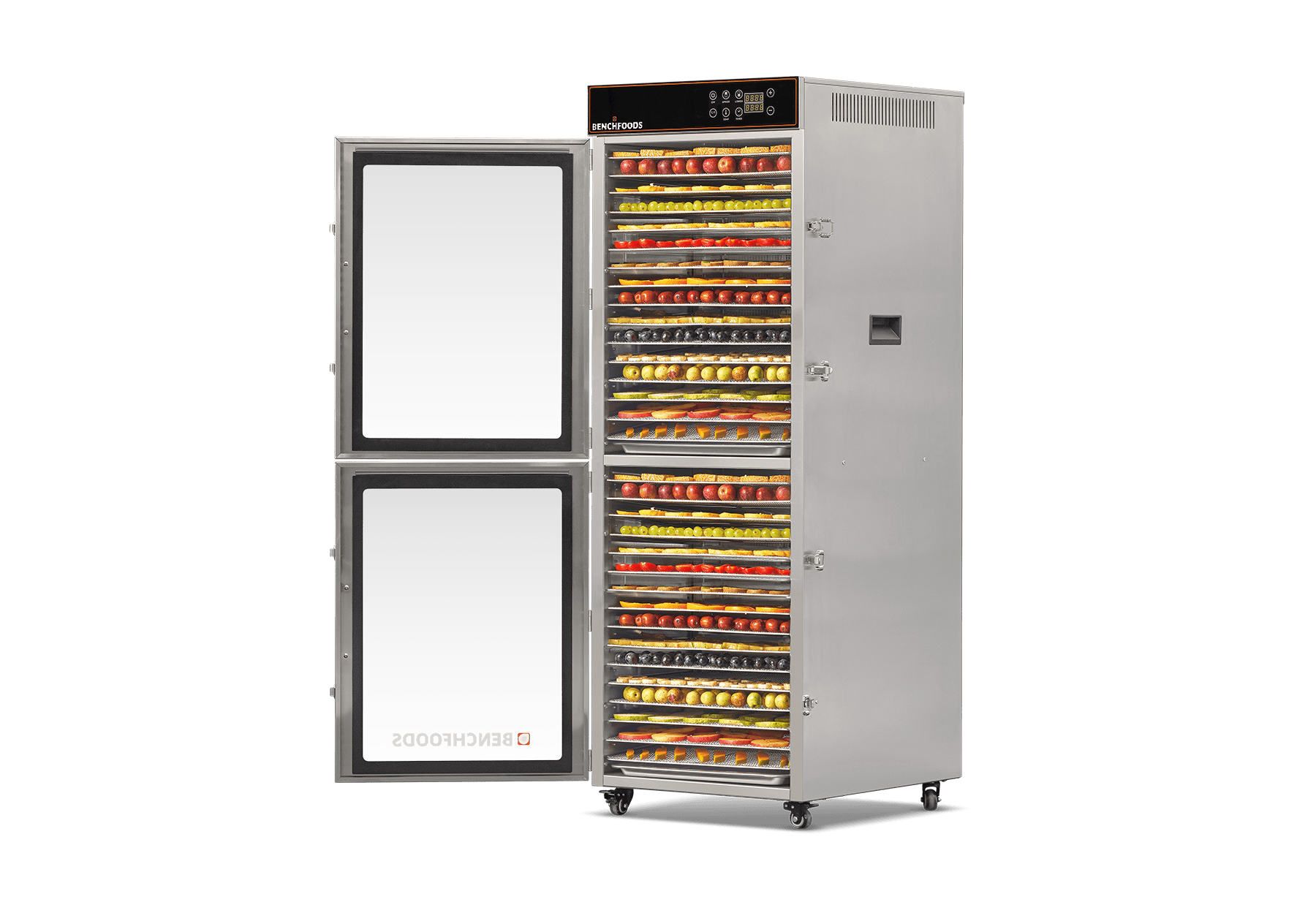 Double drying rooms support dehydrate different foods simultaneously. The scope of food dehydration includes: