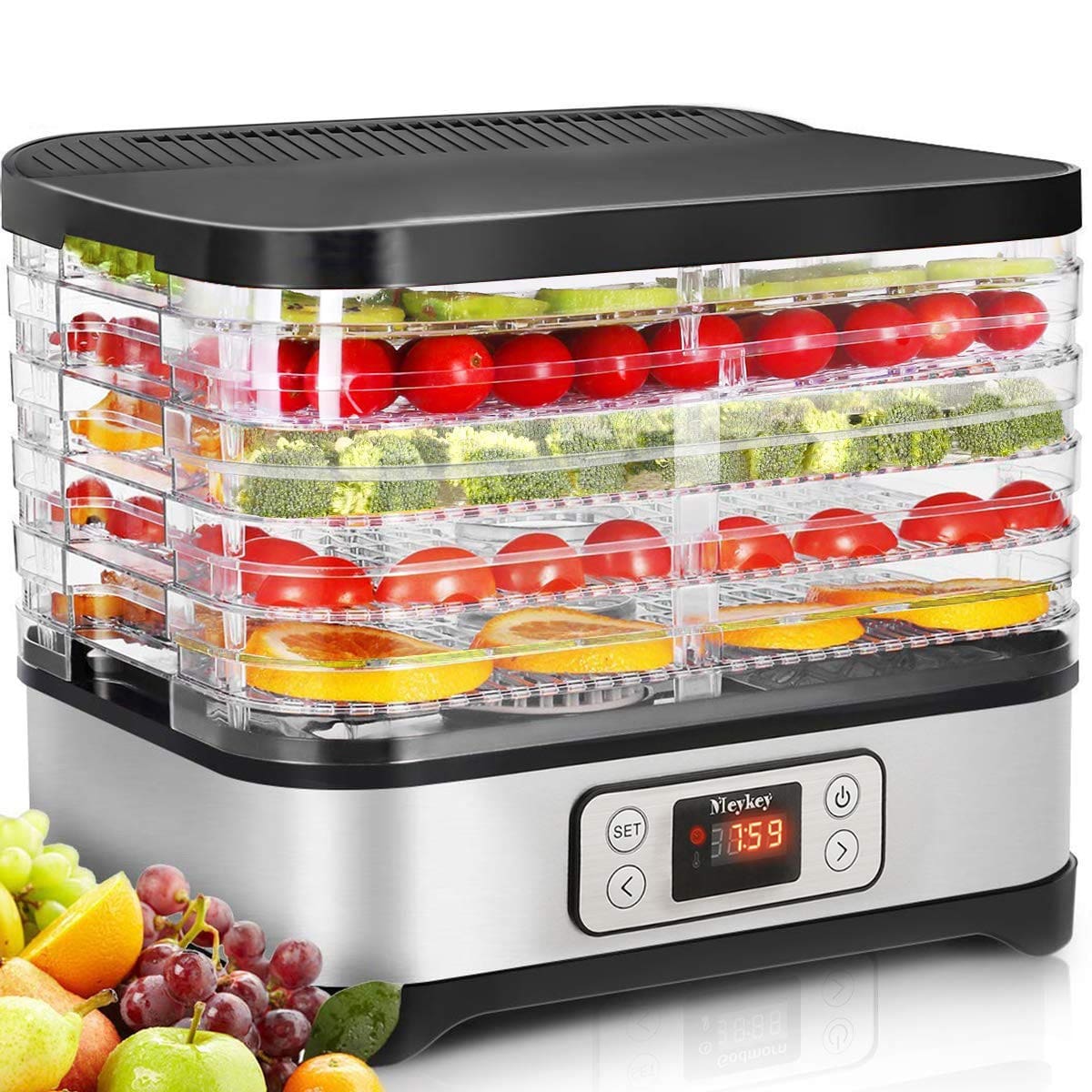 - 5 LAYERS OF TRAYS – This food dehydrator is designed with 5 large capacity food-grade drying racks, which is enough to hold most food items and create uniform drying; 5 trays provide the ultimate convenience to classify different food and increase productivity