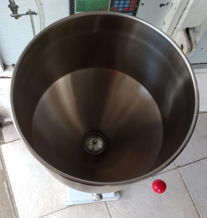 The product is made of stainless steel and it has a capacity of around 25 litres in a steel hopper.