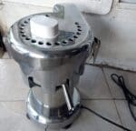 Commercial juice extractor is stainless steel construction for easy cleaning and corrosion prevention