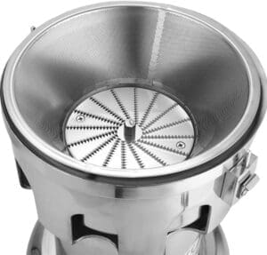 - Commercial juice extractor is stainless steel construction for easy cleaning and corrosion prevention