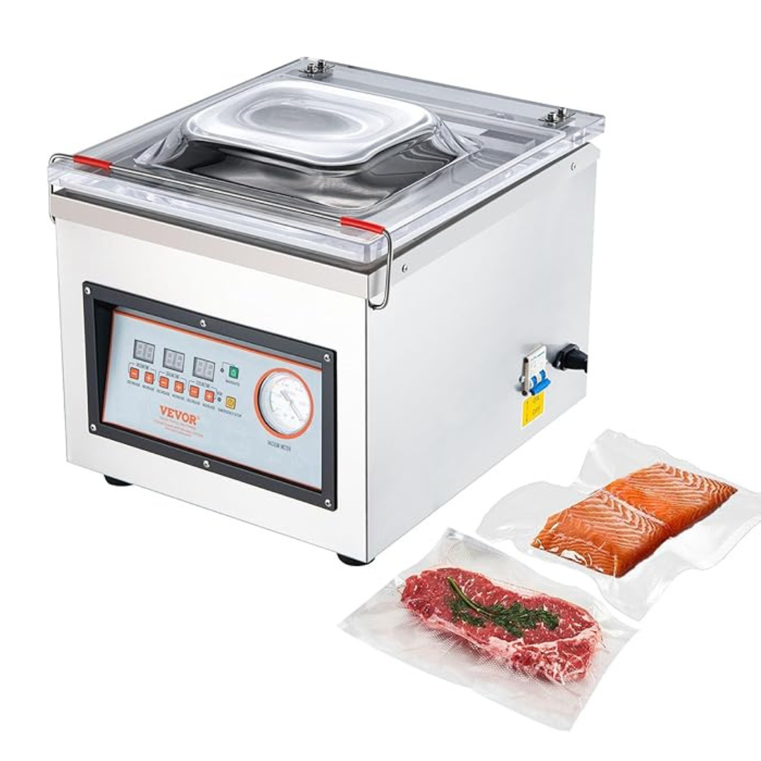 - Fits Big & Small Items: With a deep chamber, the chamber vacuum sealer packs large steaks, whole bread loaves, or bulk goods. It supports standard vacuum bags and fits needs of homes, bakeries, and butcher shops