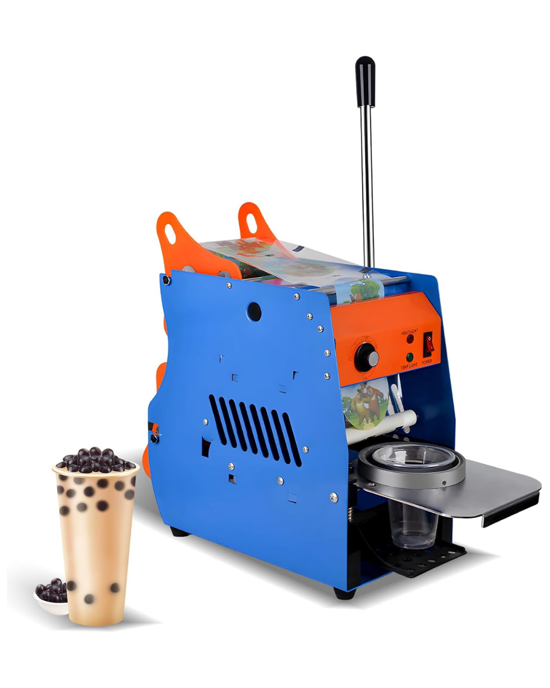 Designed with an ergonomic lever handle, the sealer offers smooth, agile control for perfectly sealed cups every time — no special skills required.
