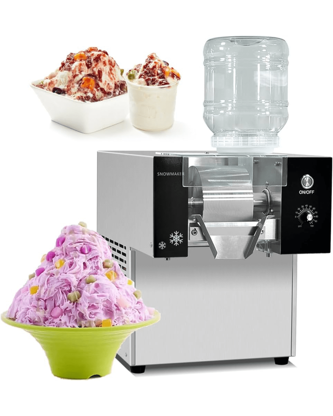 - Widely Used: The shaved ice machine can make cola ice, fruit juice ice, drink ice, snowflake ice, etc. and adds various jams or condensed milk to make cool. Perfect for daily business and household use.