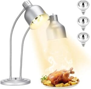 - 【High-Efficiency Infrared Heating】 Dual-head food heat lamp delivers powerful 500W infrared heating that keeps food fresh and flavorful without drying out. Your guests will taste the difference! Perfect for crispy pizzas, juicy steaks, and golden fried chicken