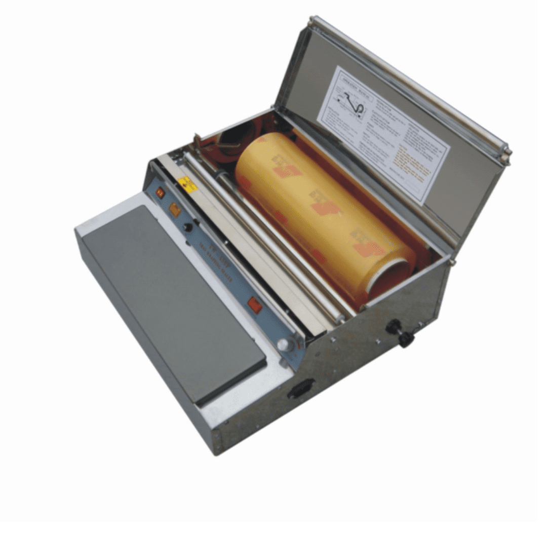 - This plastic film wrapping machine adopts all-inclusive design, the plastic wrap is placed in the machine, which is cleaner and more hygienic than the plastic wrap that needs to be placed and exposed outside. Optimized and upgraded four-rollers, stable film output without shaking.