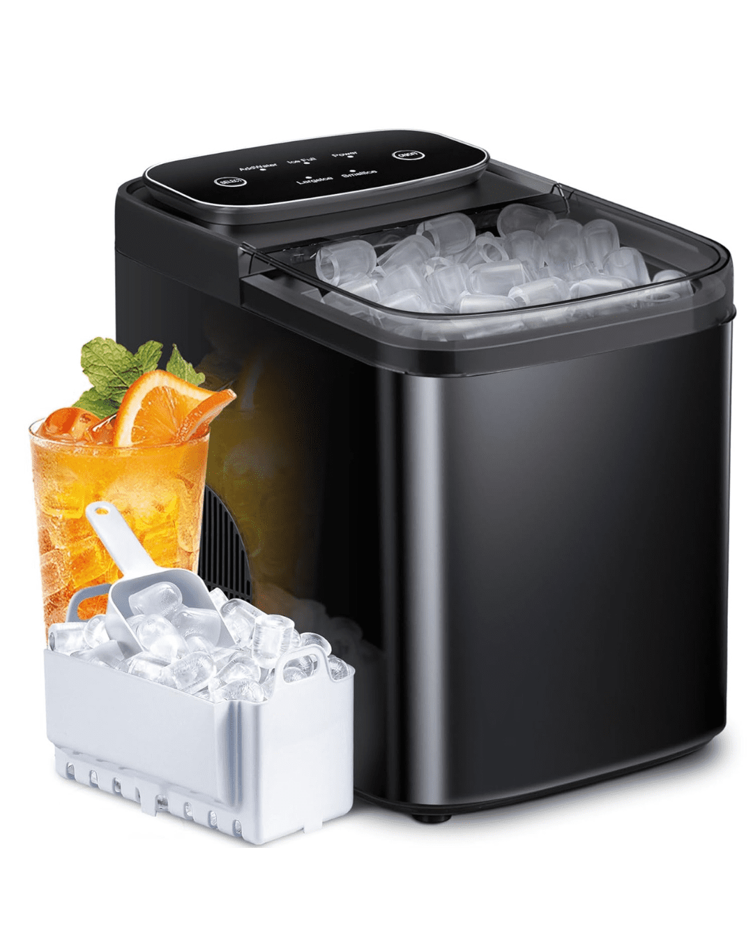Measuring 23.5 × 30.2 × 30.5 cm, this sleek and lightweight ice maker fits perfectly on any countertop. Easy to carry and move, it’s ideal for homes, offices, kitchens, RVs, and parties.