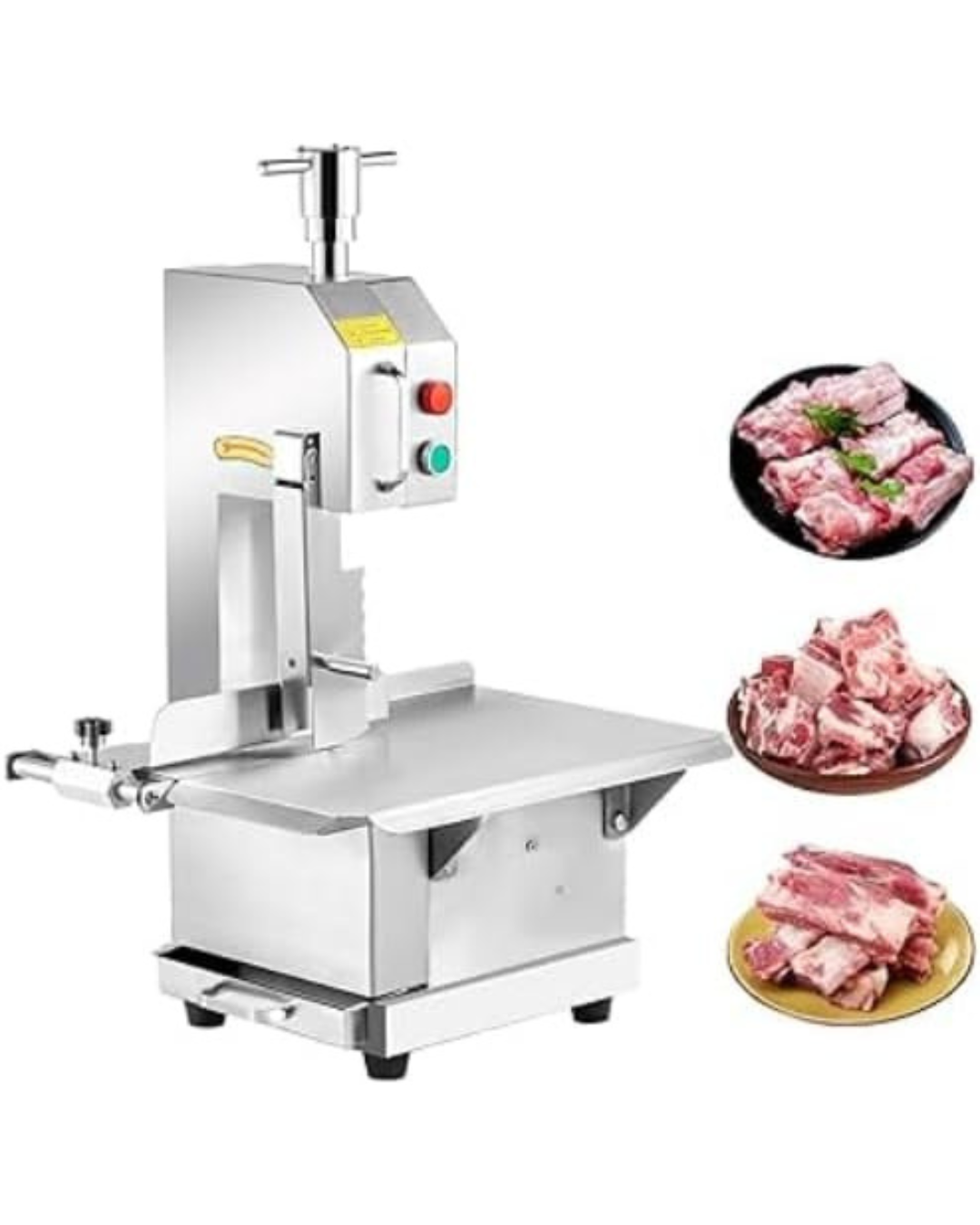 SAS- Commercial Electric Bone Sawing Cutting Machine 750W All Stainless Steel Made Automatic Frozen Meat Cutter Electric Meat Band Saw Bone Saw Machine Cutting Speed 15m/s MACHINE SIZE : 500x400x720MM VOLTS : 220V/50HZ POWER : 850W CUTTING APEED : 15M/S THE SAW SIZE : 1200MM WORKING TABLE : 490X330MM