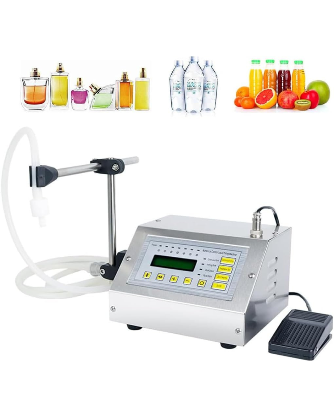 - Two filling modes: pedal or automatic, filling Range: 5ml-3500ml; maximum flow rate: 3.2L/min; maximum suck distance: 2m, production capacity: 300-400 bottles/h. (***Note: Because the machine is equipped with a long tube, so when the machine is in use, need to empty the air inside the tube before filling.)
