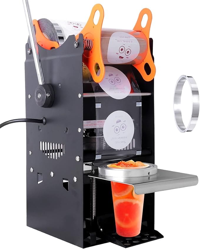 - DIAMETER 90/95mm CUP: Cup sealer machine can seal cups under 180mm in height and 90mm/ 95mm caliber. It can seal plastic cups, paper cups with capacity less than 700ml.