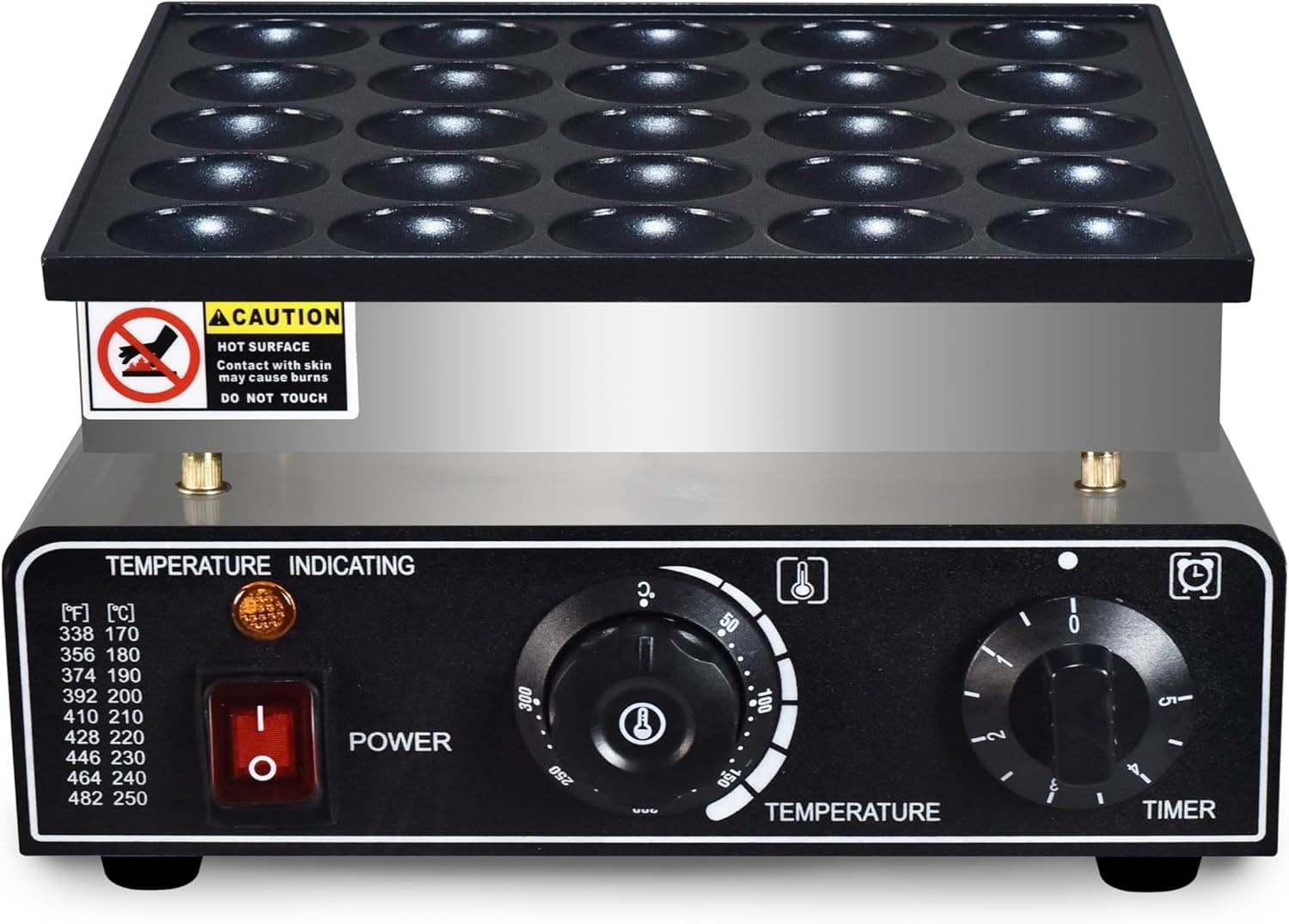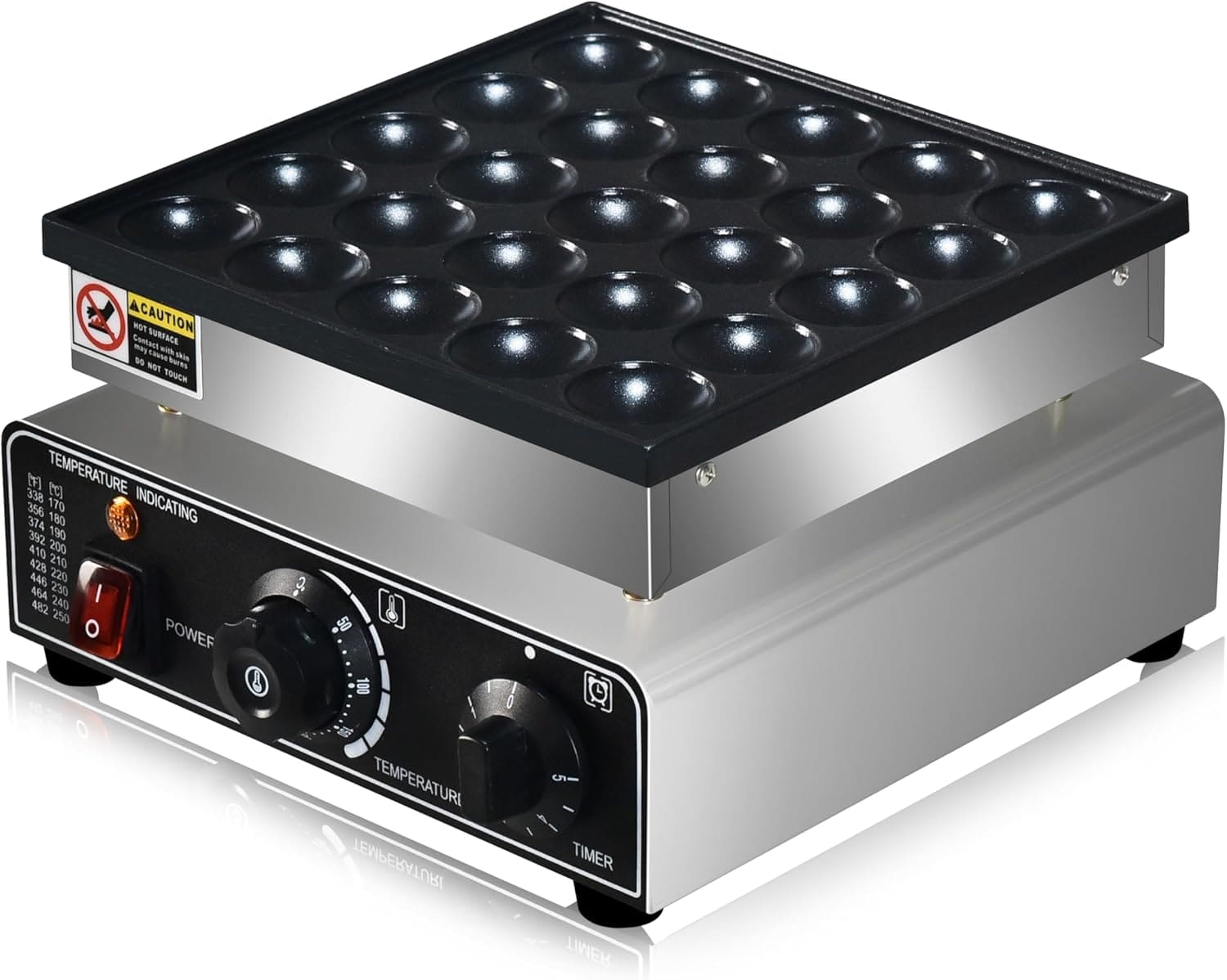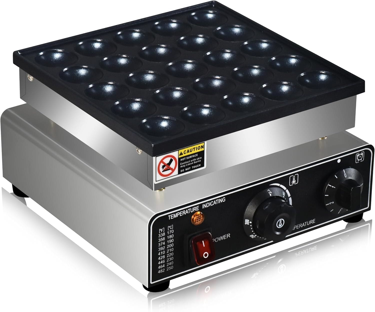Large Baking Capacity – 10.5in x 10.5in plate with 25 slots; each pancake size: 1.77in x 0.39in.