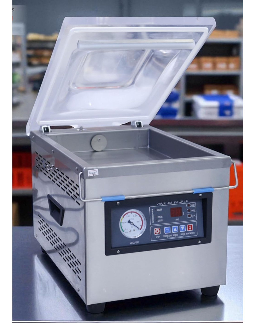- 📏 Spacious Chamber & Compact Design: The vacuum chamber measures 390mm (L) x 280mm (W) x 50mm (H), providing ample space to accommodate a wide range of package sizes without sacrificing performance. Despite its powerful capabilities, the overall machine dimensions are 495mm x 335mm x 380mm, making it compact enough to fit conveniently on countertops, saving valuable workspace.